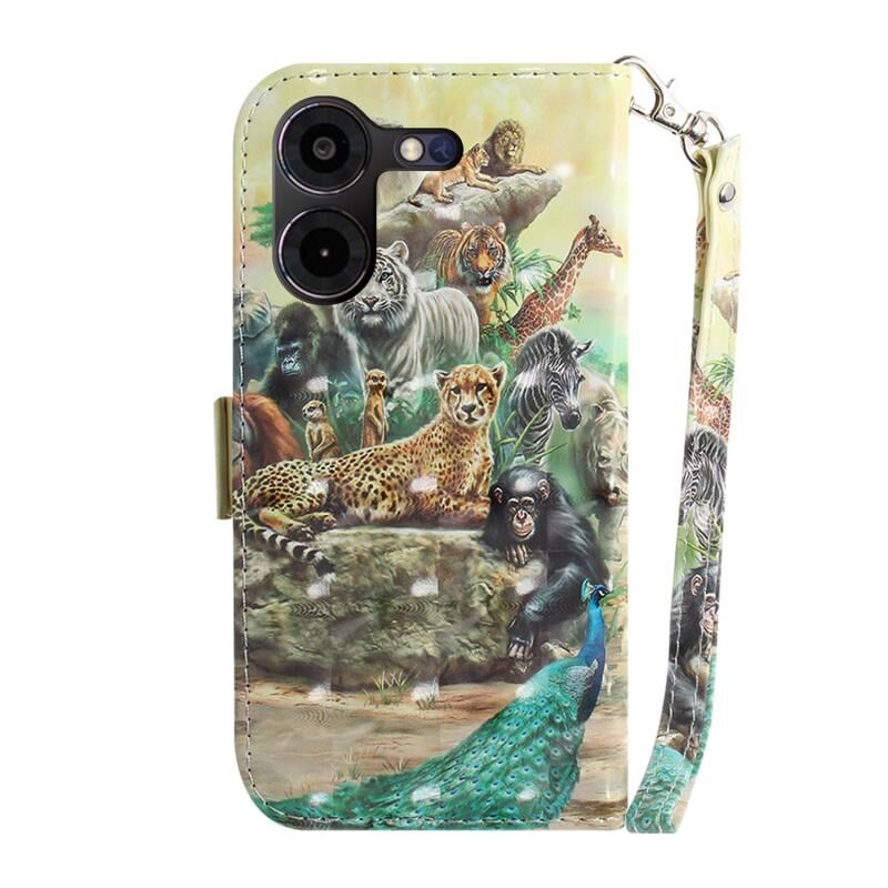 Θήκη τηλεφώνου δερμάτινη, οριζόντια, αναδιπλούμενη, με τρισδιάστατα χρώματα για Tecno Pova 5 Pro (Ζωολογικός κήπος)