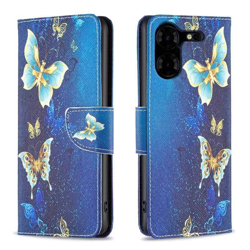 Θήκη τηλεφώνου από δέρμα με πολύχρωμο σχέδιο για Tecno Pova 5 Pro 5G (Χρυσή Πεταλούδα)