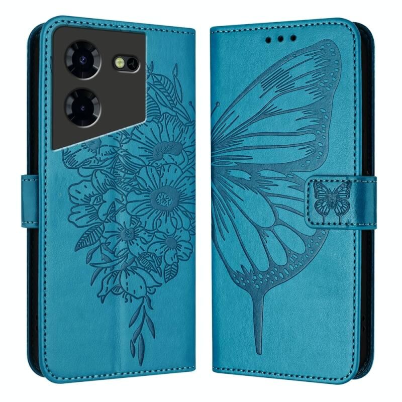 Θήκη τηλεφώνου από δέρμα με ανάγλυφο σχέδιο πεταλούδας για Tecno Pova 5 Pro 5G (Μαύρο)