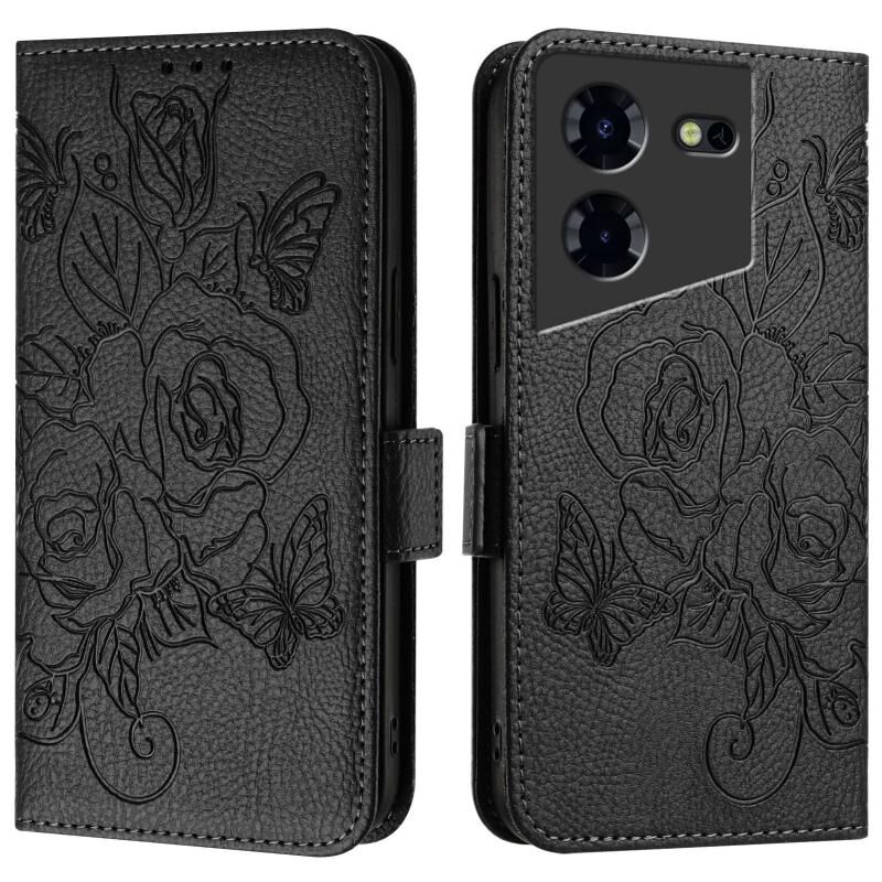 For Tecno Pova 5 Pro 5G Embossed Rose RFID Anti-theft Leather Phone Case(Black)
