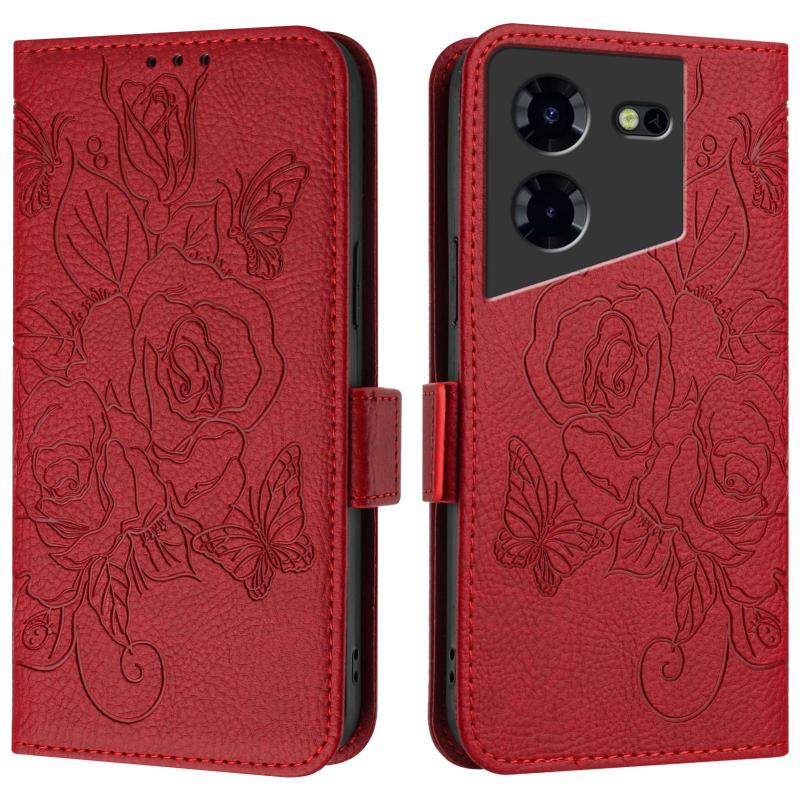 For Tecno Pova 5 Pro 5G Embossed Rose RFID Anti-theft Leather Phone Case(Red)
