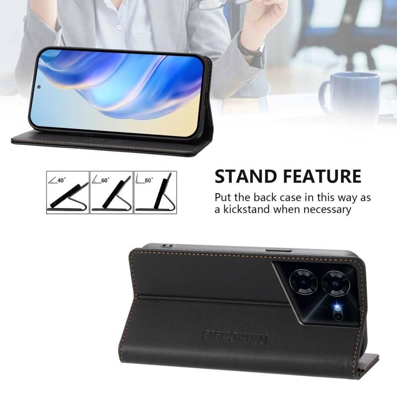 For Tecno Pova 5 Pro 5G RC01 Dual-Folded Magnetic Suction RFID Leather Phone Case(Black)