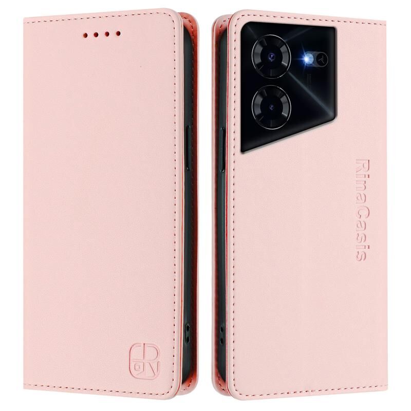 For Tecno Pova 5 Pro 5G RC01 Dual-Folded Magnetic Suction RFID Leather Phone Case(Pink)