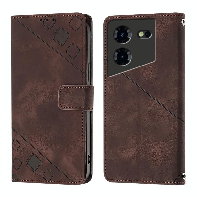 Για το Tecno Pova 5 Pro 5G Skin Feel ανάγλυφη δερμάτινη θήκη τηλεφώνου (καφέ)
