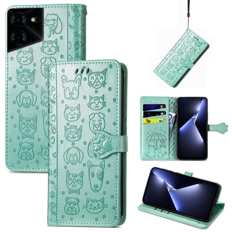 Θήκη τηλεφώνου από δέρμα με ανάγλυφο σχέδιο γάτας και σκύλου για Tecno Pova 5 Pro (Μπλε)