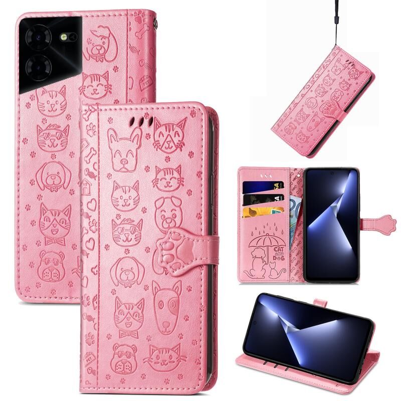 Θήκη τηλεφώνου από δέρμα με ανάγλυφο σχέδιο γάτας και σκύλου για Tecno Pova 5 Pro (Μπλε)