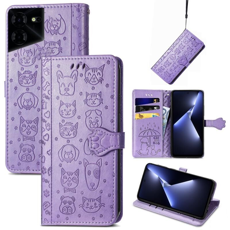 Θήκη τηλεφώνου από δέρμα με ανάγλυφο σχέδιο γάτας και σκύλου για Tecno Pova 5 Pro (Μπλε)