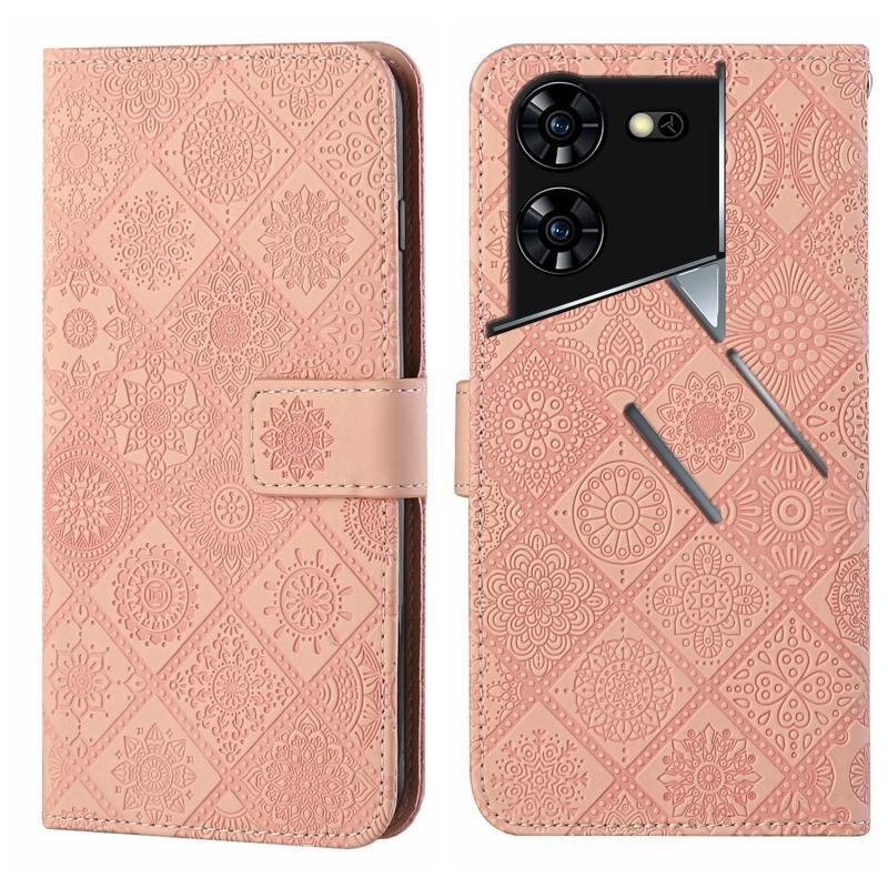 Θήκη τηλεφώνου από δέρμα με ανάγλυφο σχέδιο εθνοτικού στυλ για Tecno Pova 5 Pro (Καφέ)
