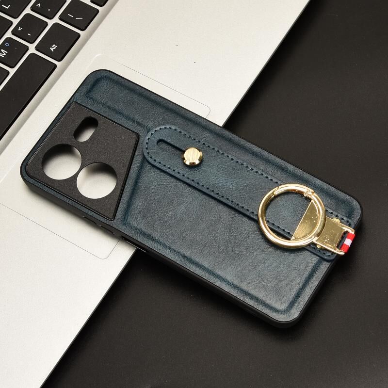 Για Tecno Pova 5 Pro Wristband δέρμα πίσω υπόθεση τηλεφώνου (μπλε)