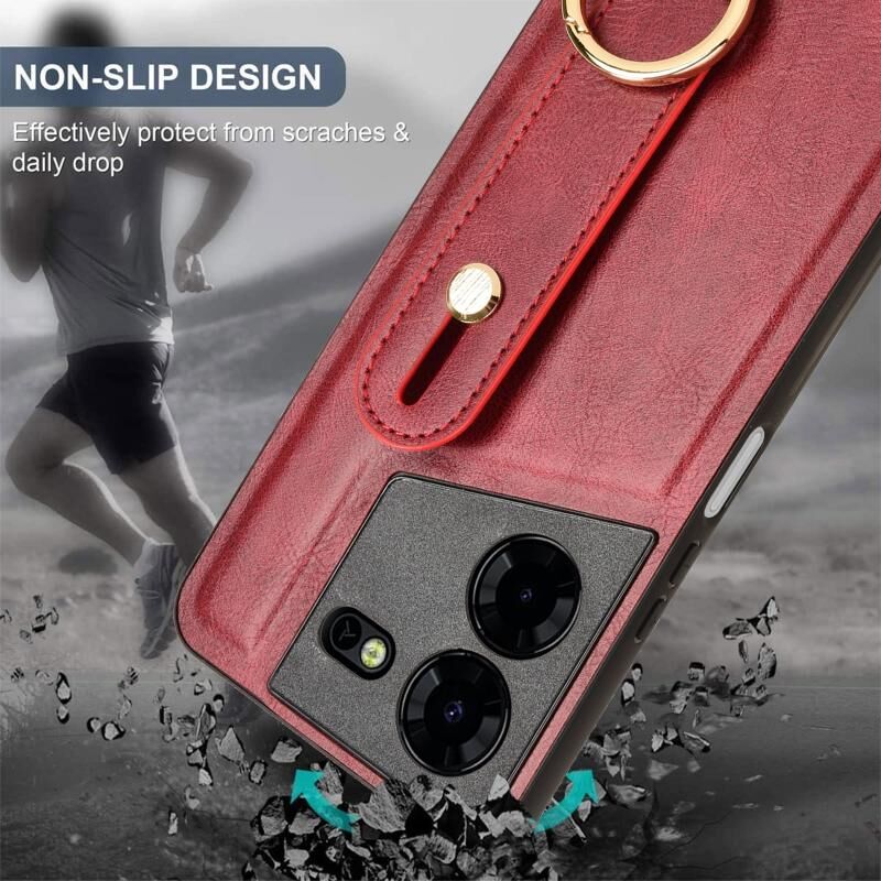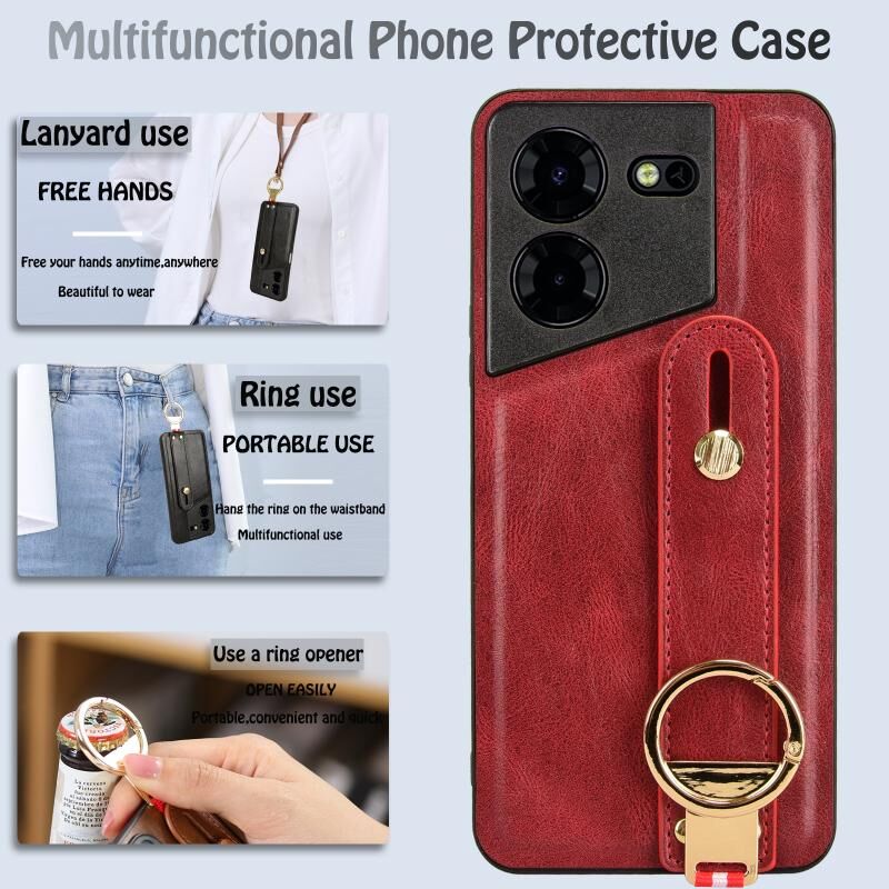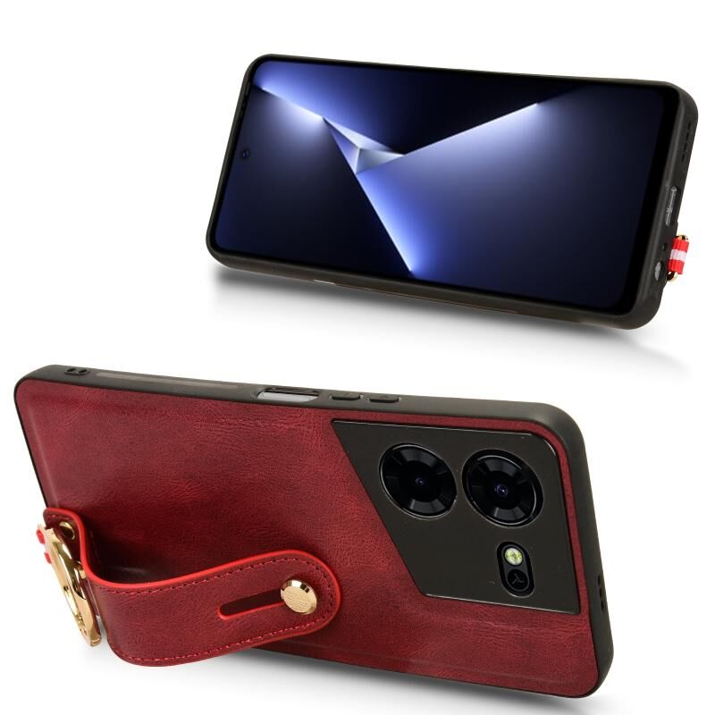 Για Tecno Pova 5 Pro Wristband δέρμα πίσω υπόθεση τηλεφώνου (κόκκινο)