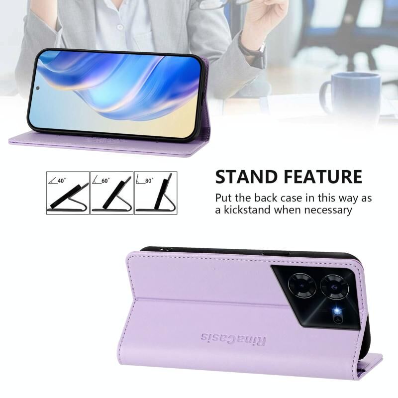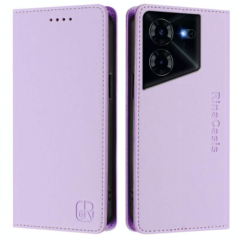 For Tecno Pova 5 RC01 Dual-Folded Magnetic Suction RFID Leather Phone Case(Light Purple)