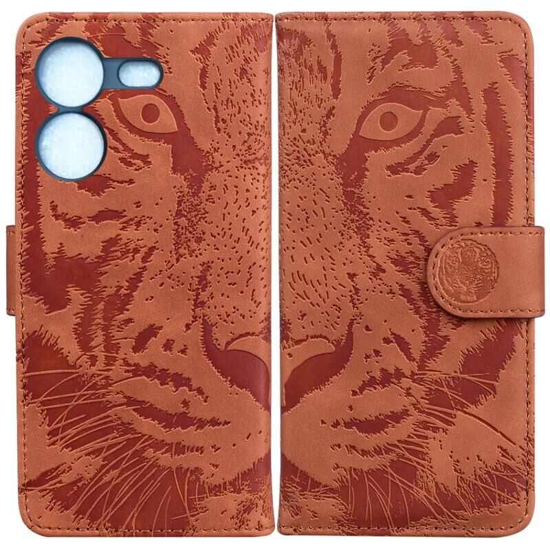 Θήκη τηλεφώνου από δέρμα με σχέδιο Tiger Embossing για Tecno Pova 5 (Μαύρο)