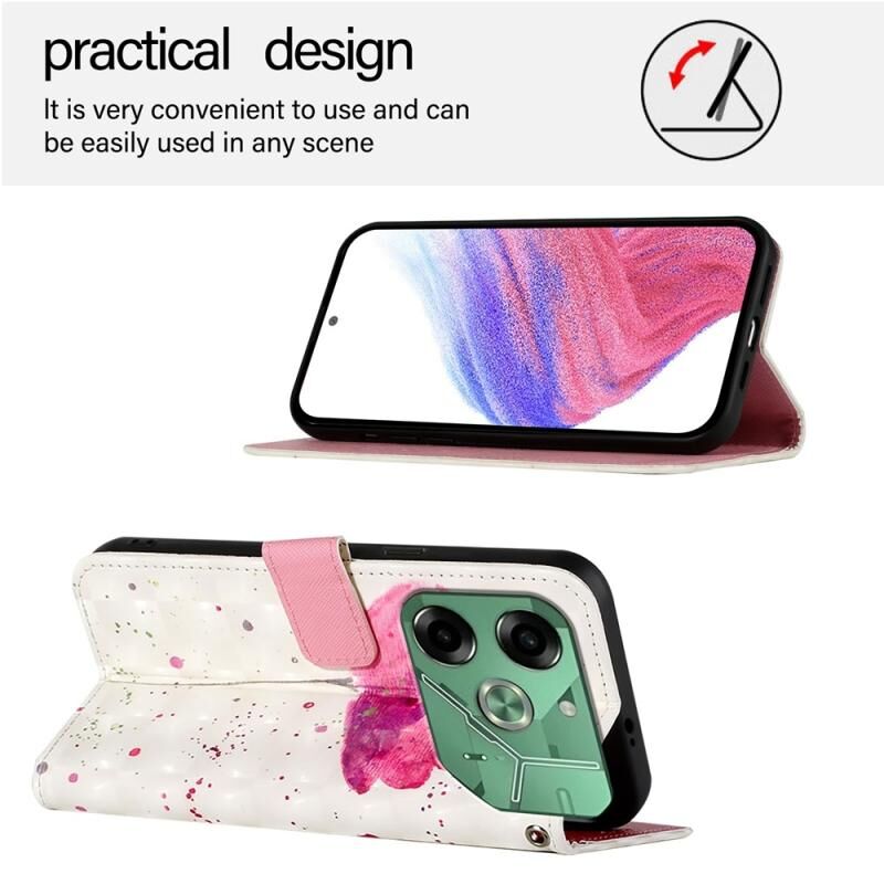 Θήκη τηλεφώνου από δέρμα με οριζόντιο άνοιγμα και τρισδιάστατη βαφή για Tecno Pova 6 4G (Λουλούδι)
