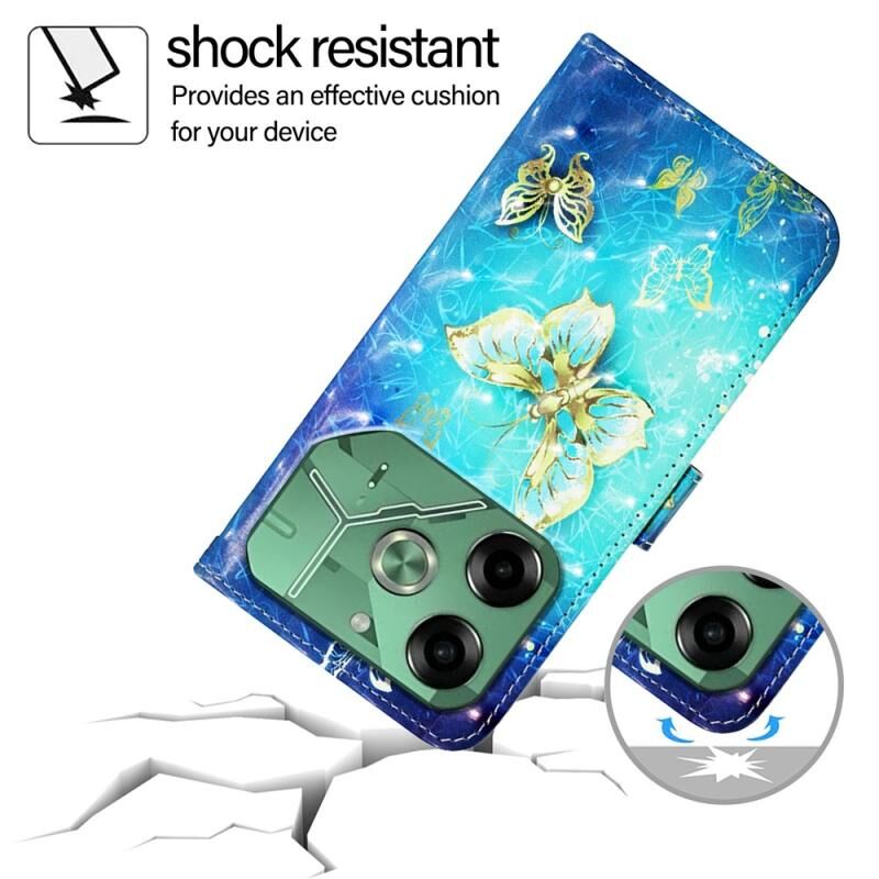 Θήκη τηλεφώνου από δέρμα με οριζόντιο άνοιγμα και τρισδιάστατη βαφή για Tecno Pova 6 4G (Χρυσή Πεταλούδα)