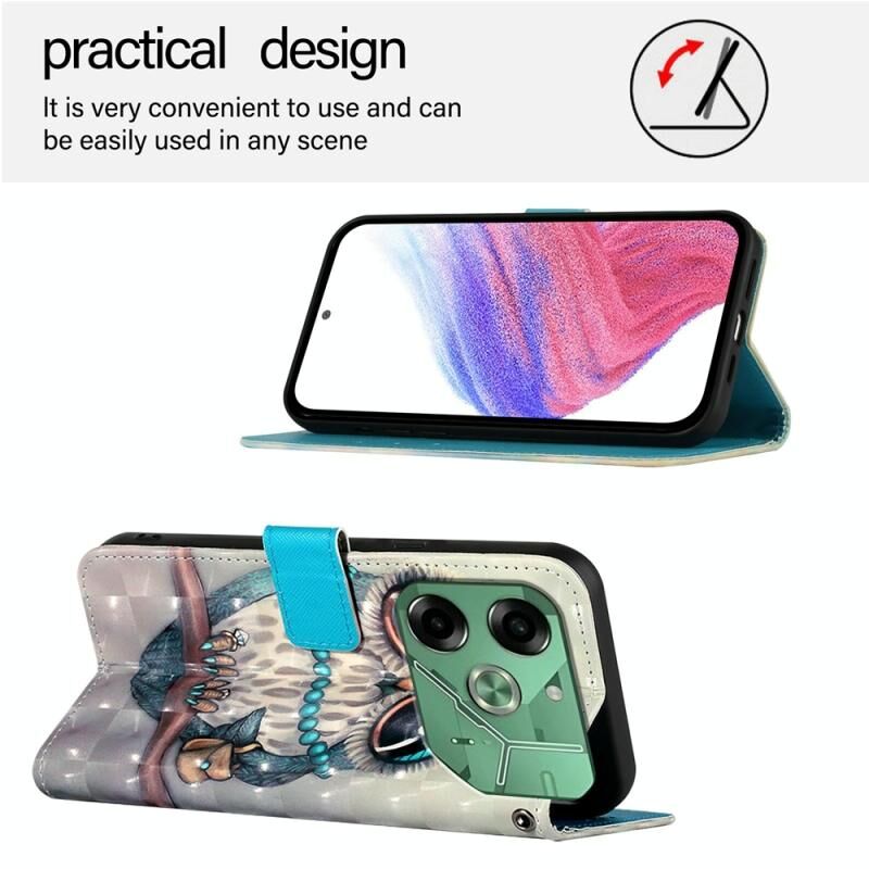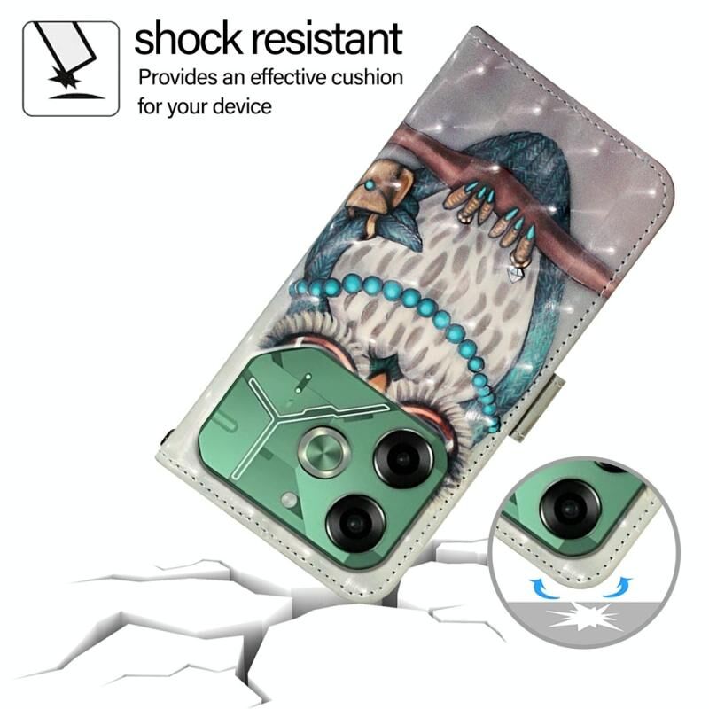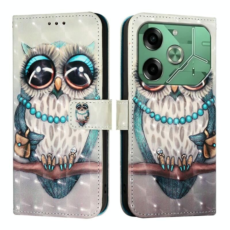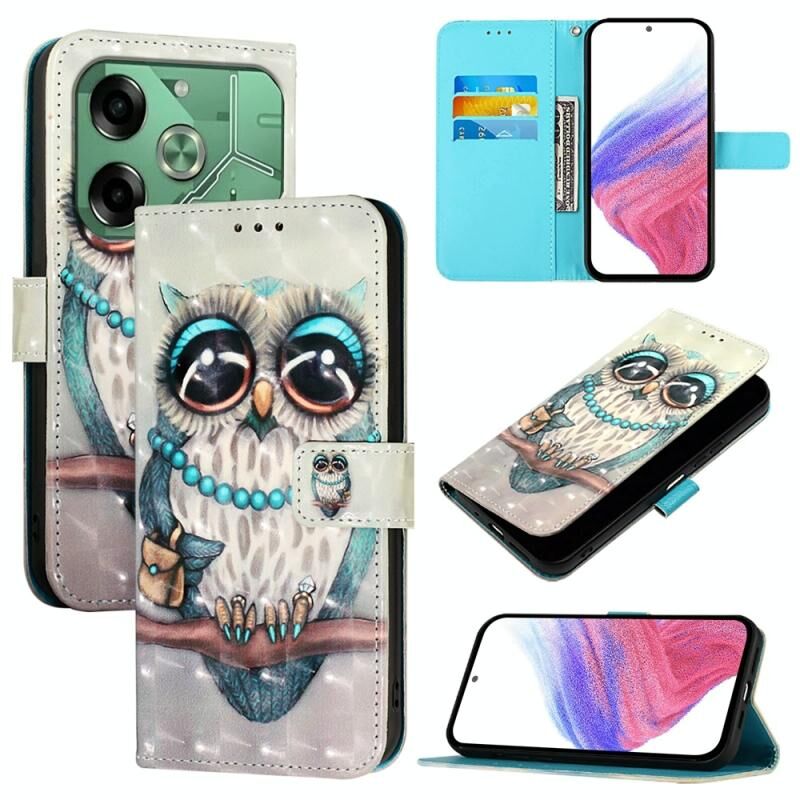 Θήκη τηλεφώνου από δέρμα με οριζόντιο άνοιγμα και τρισδιάστατη βαφή για Tecno Pova 6 4G (Γκρι Κουκουβάγια)