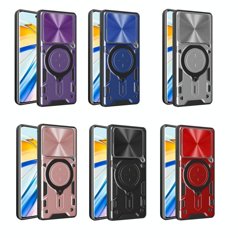 Θήκη τηλεφώνου για Tecno Pova 6 4G με υφή CD, συρόμενο προστατευτικό κάμερας και μαγνητική βάση (Ροζ)