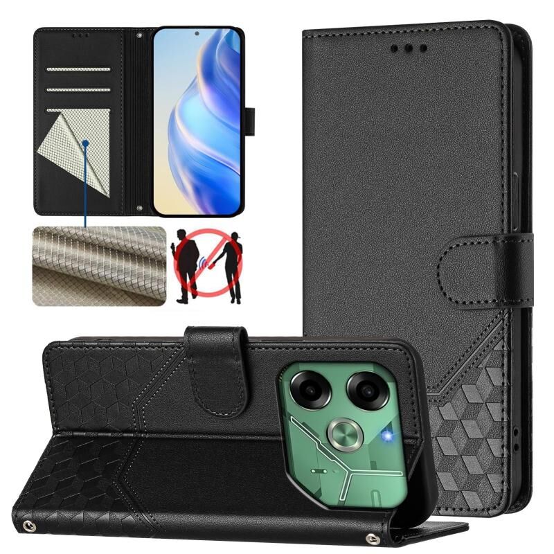Για Tecno Pova 6 4G Honeycomb ανάγλυφη RFID δερμάτινη θήκη τηλεφώνου (Μαύρο)