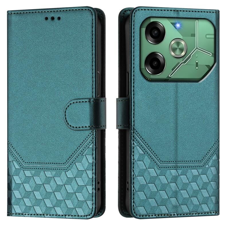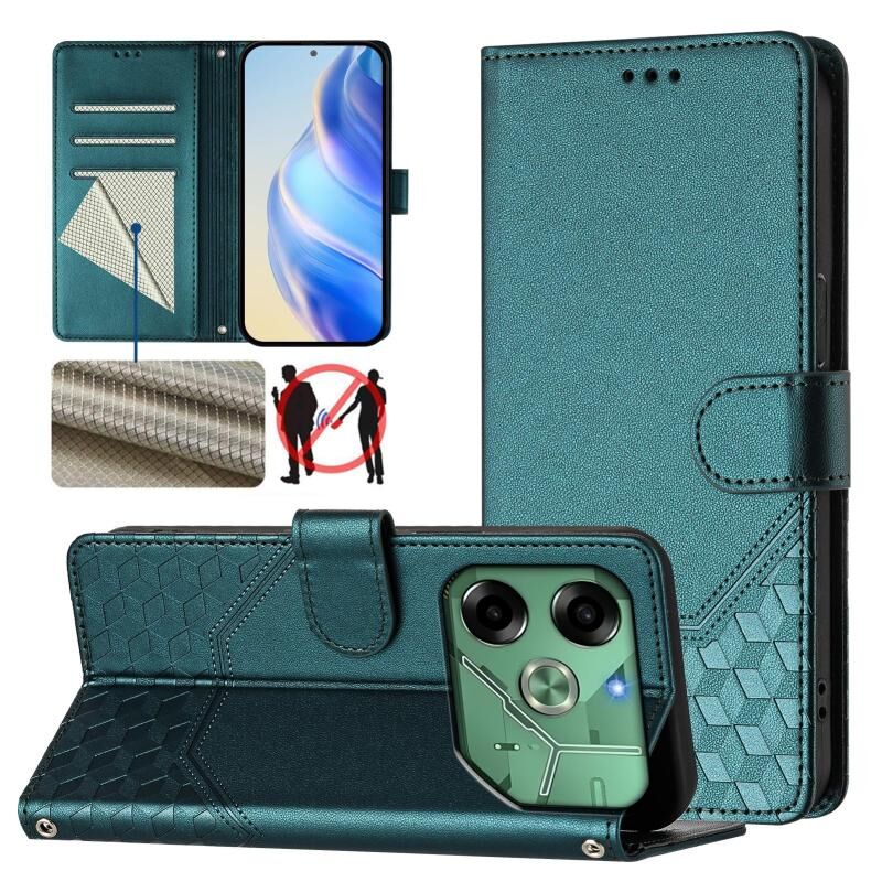 Για Tecno Pova 6 4G Honeycomb ανάγλυφη RFID δερμάτινη θήκη τηλεφώνου (Πράσινο παγώνι)
