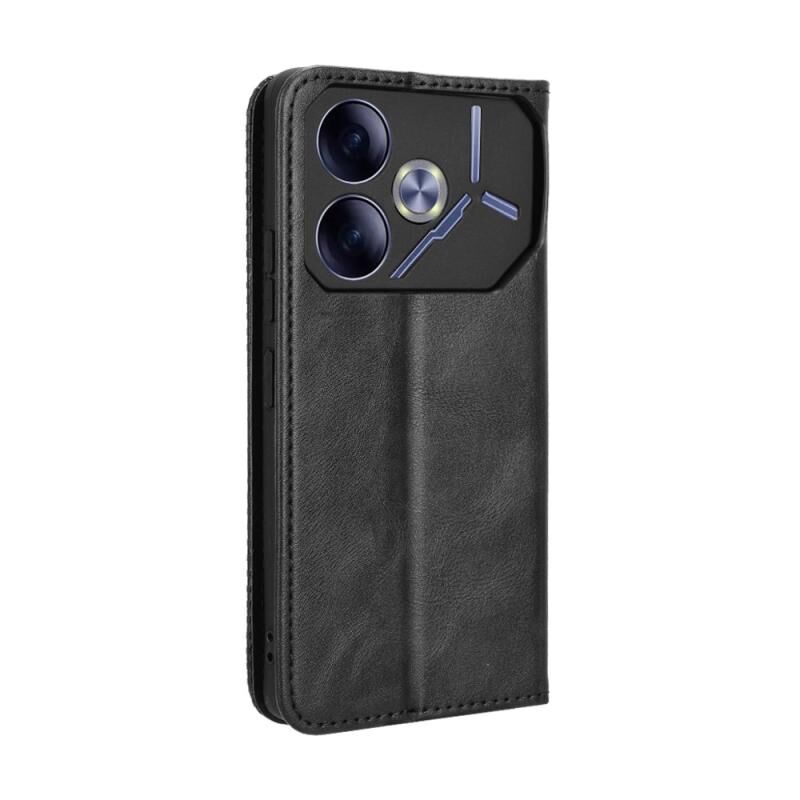 Για Tecno Pova 6 4G Μαγνητική πόρπη ρετρό υφή δερμάτινη θήκη τηλεφώνου (μαύρο)