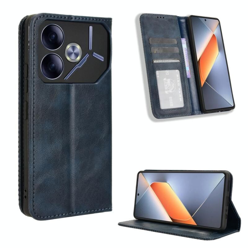 Για Tecno Pova 6 4G Μαγνητική πόρπη ρετρό υφή δερμάτινη θήκη τηλεφώνου (μπλε)