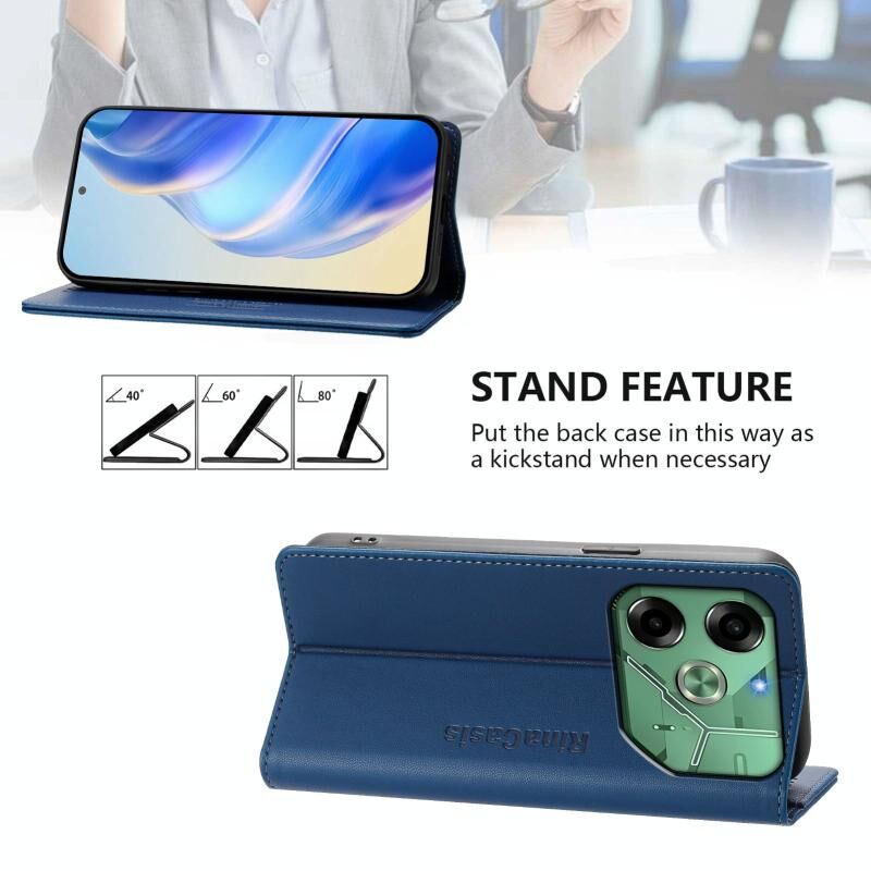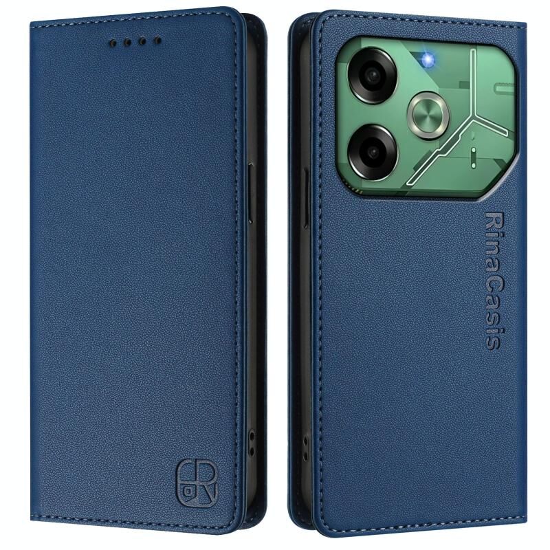 For Tecno Pova 6 4G RC01 Dual-Folded Magnetic Suction RFID Leather Phone Case(Dark Blue)