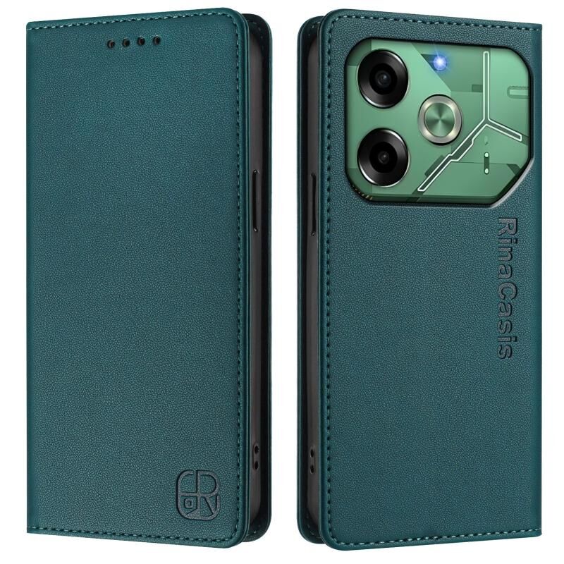 For Tecno Pova 6 4G RC01 Dual-Folded Magnetic Suction RFID Leather Phone Case(Dark Green)