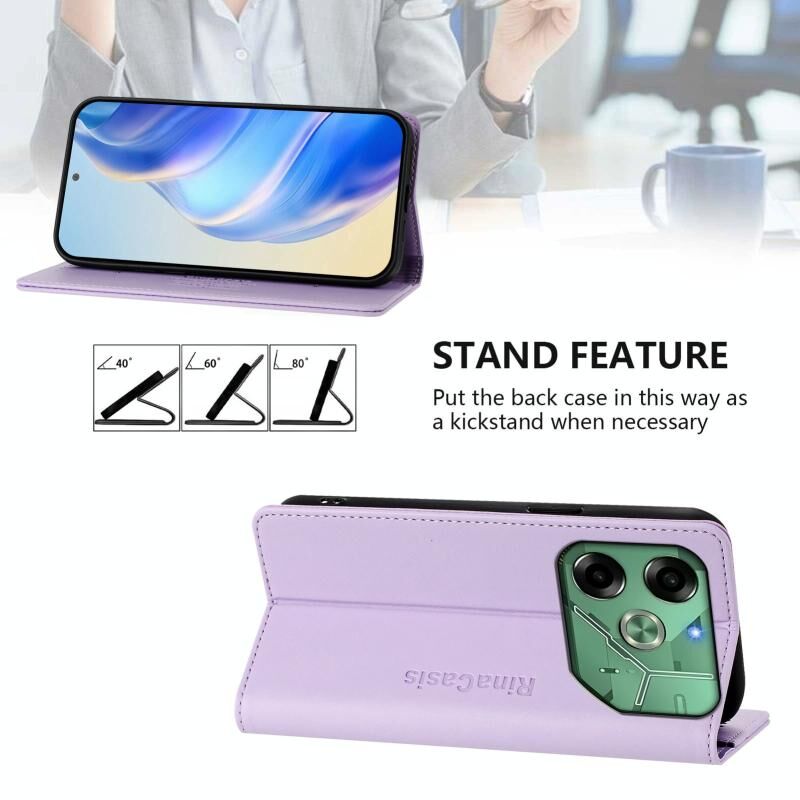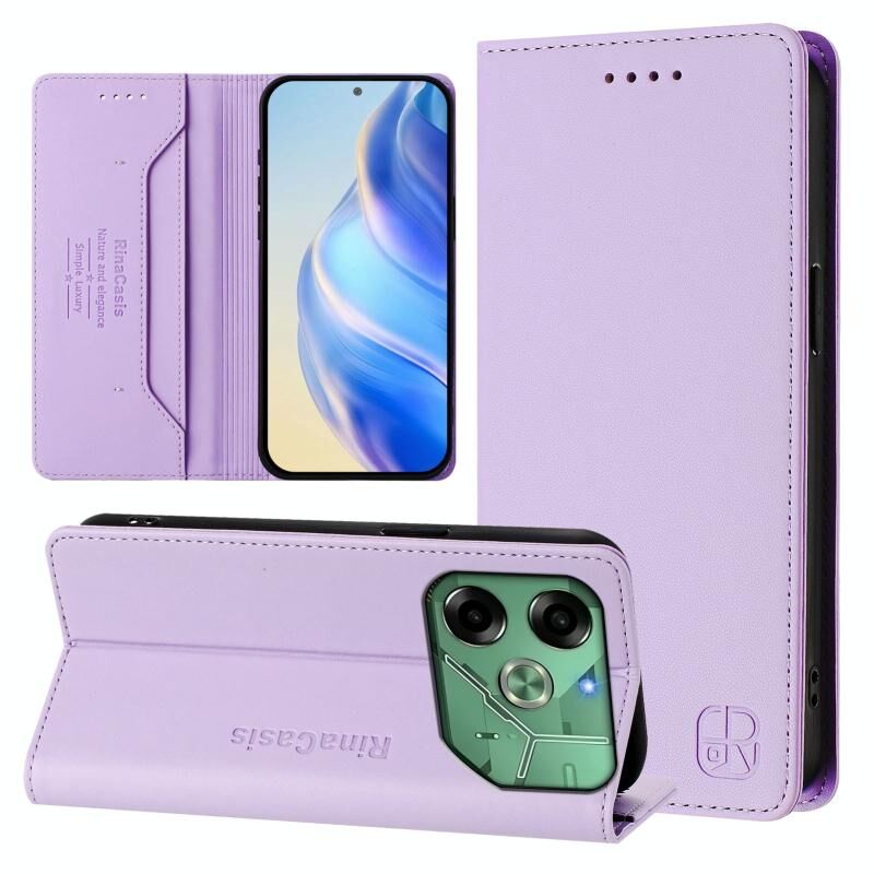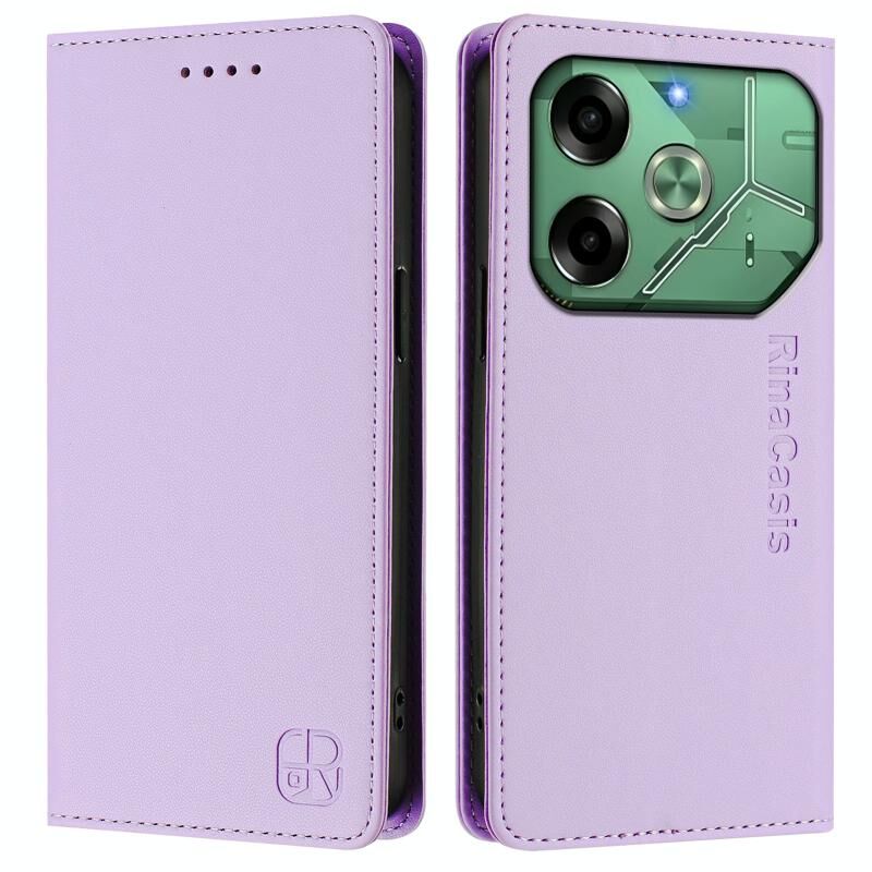 For Tecno Pova 6 4G RC01 Dual-Folded Magnetic Suction RFID Leather Phone Case(Light Purple)