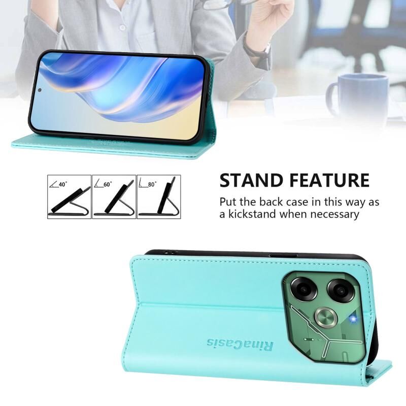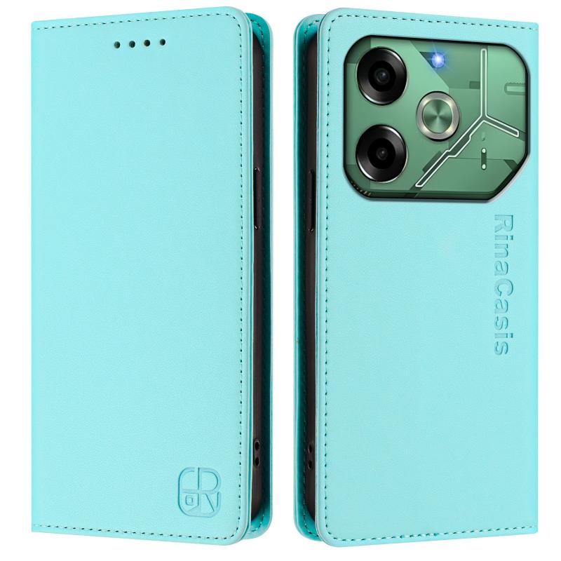 For Tecno Pova 6 4G RC01 Dual-Folded Magnetic Suction RFID Leather Phone Case(Mint Green)