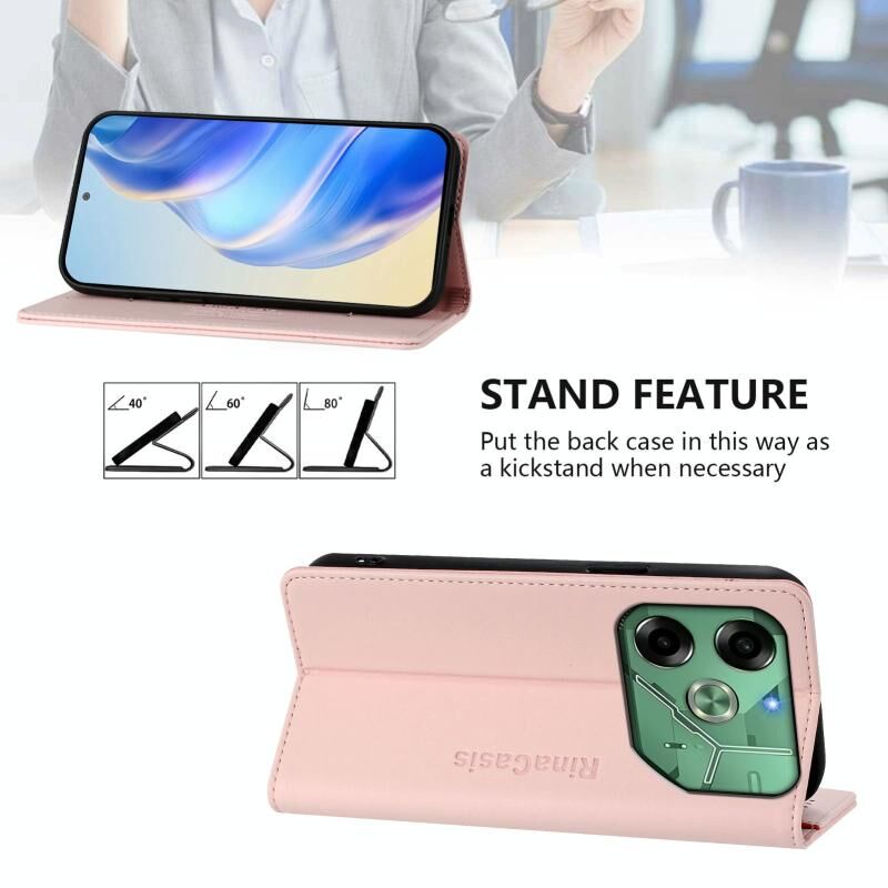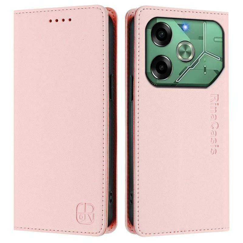 For Tecno Pova 6 4G RC01 Dual-Folded Magnetic Suction RFID Leather Phone Case(Pink)