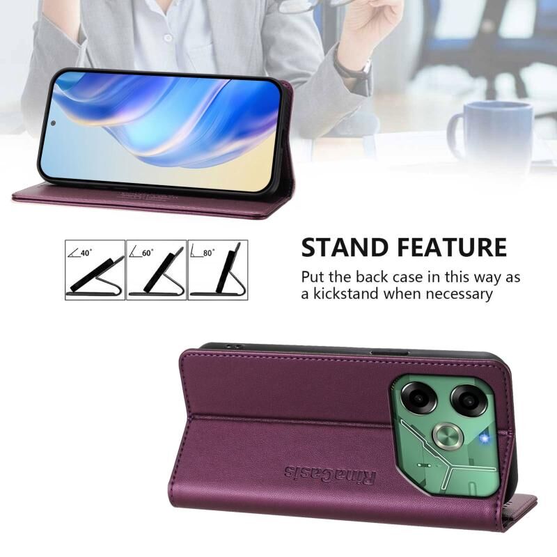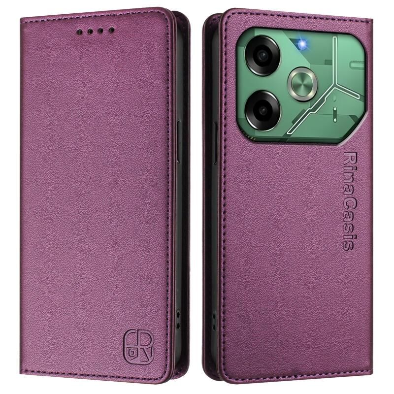 For Tecno Pova 6 4G RC01 Dual-Folded Magnetic Suction RFID Leather Phone Case(Violet)