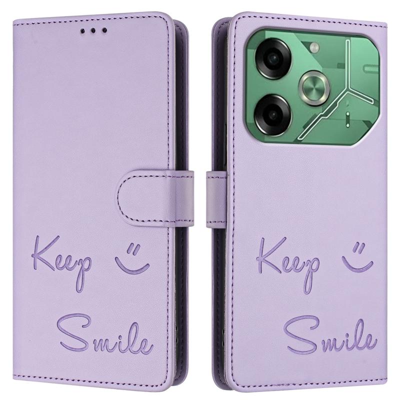 For Tecno Pova 6 4G Smile Embossing RFID Leather Phone Case(Light Purple)