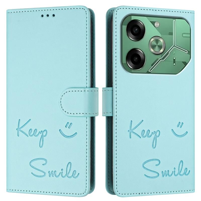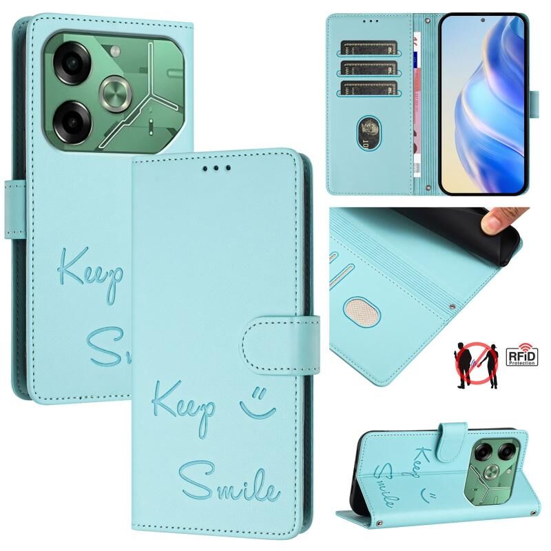For Tecno Pova 6 4G Smile Embossing RFID Leather Phone Case(Mint Green)