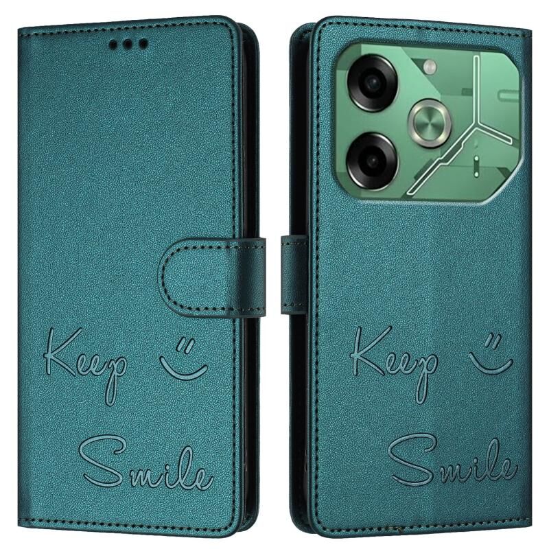 For Tecno Pova 6 4G Smile Embossing RFID Leather Phone Case(Peacock Green)