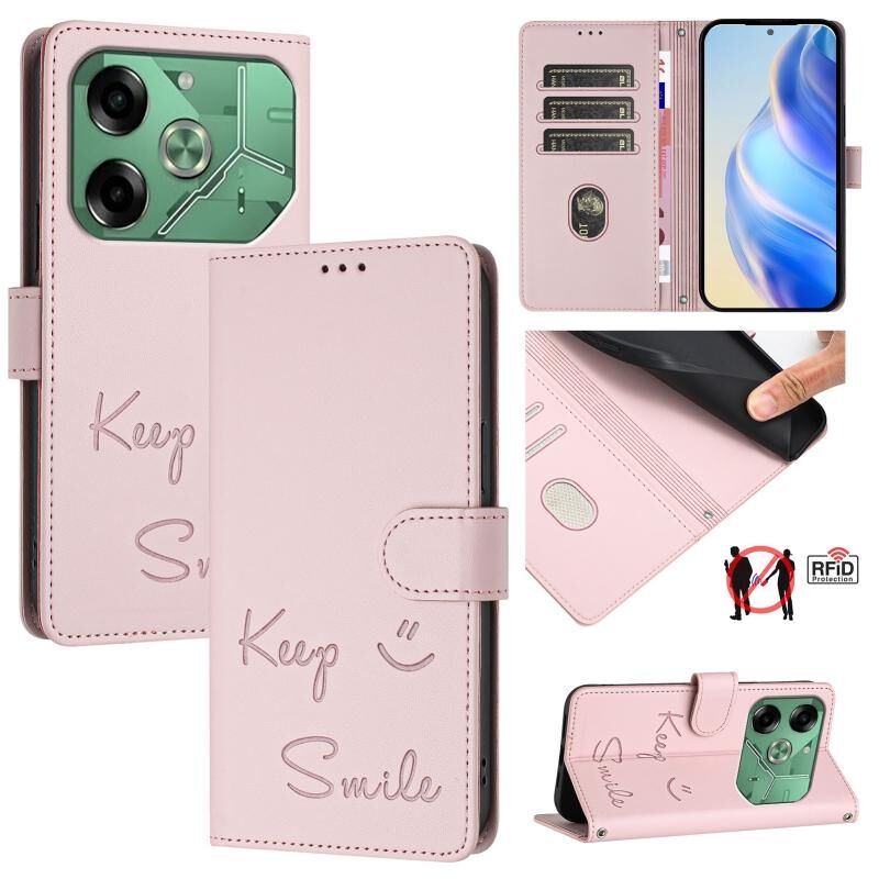For Tecno Pova 6 4G Smile Embossing RFID Leather Phone Case(Pink)