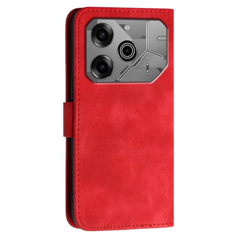 Θήκη τηλεφώνου δερμάτινη με ανάγλυφο σχέδιο πλέγματος πεταλούδας για Tecno Pova 6 5G / 6 Pro 5G με κορδόνι (Κόκκινο)