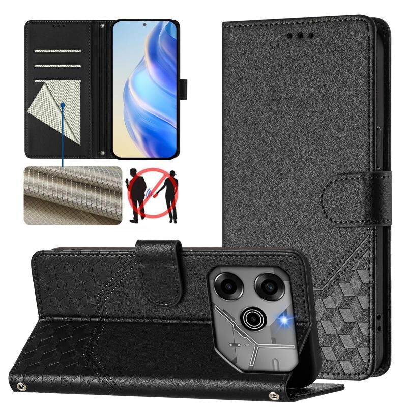 Για Tecno Pova 6 5G / 6 Pro 5G Honeycomb ανάγλυφη RFID δερμάτινη θήκη τηλεφώνου (Μαύρο)