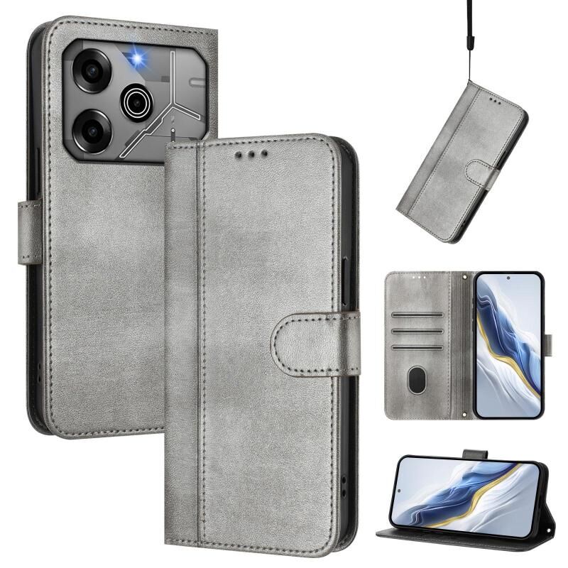 For Tecno Pova 6 5G / 6 Pro 5G Line Splicing Buckle Retro Leather Phone Case(Grey)