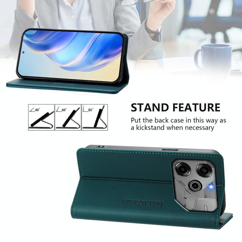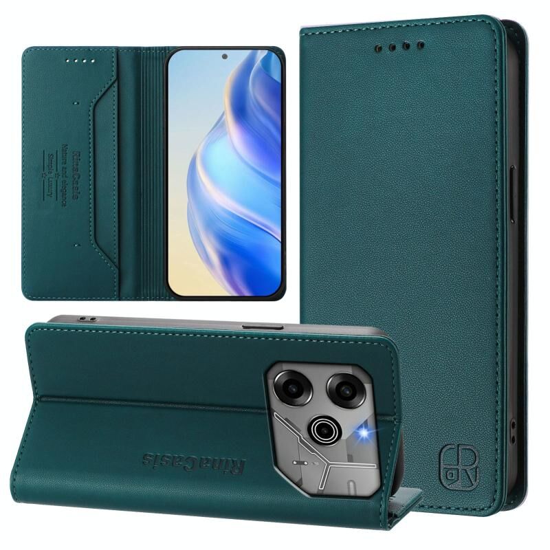 For Tecno Pova 6 5G / 6 Pro 5G RC01 Dual-Folded Magnetic Suction RFID Leather Phone Case(Dark Green)
