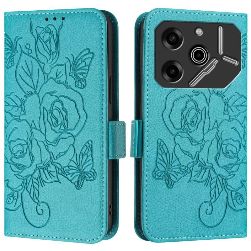 For Tecno Pova 6 5G / 6 Pro Embossed Rose RFID Anti-theft Leather Phone Case(Light Blue)
