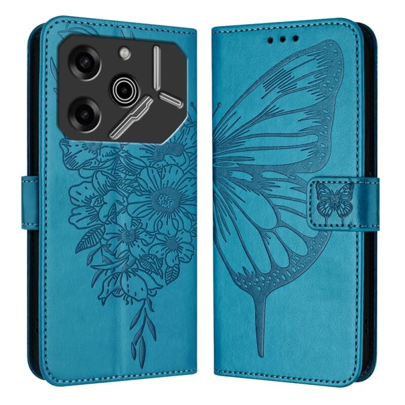 For Tecno Pova 6 5G Embossed Butterfly Leather Phone Case(Blue)
