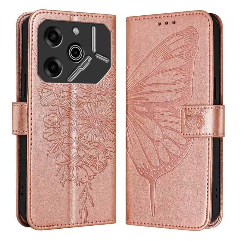 Θήκη τηλεφώνου Tecno Pova 6 5G από δέρμα με ανάγλυφο σχέδιο πεταλούδας (Μαύρο)