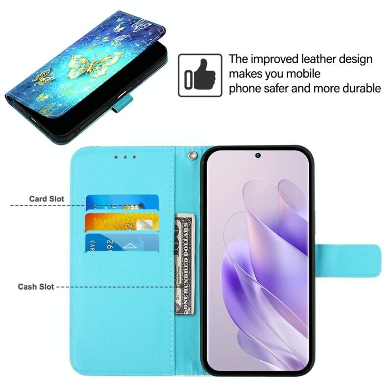 Θήκη τηλεφώνου από δέρμα με οριζόντιο άνοιγμα για Tecno Pova 6 5G / Pova 6 Pro με τρισδιάστατη ζωγραφική (Χρυσή Πεταλούδα)