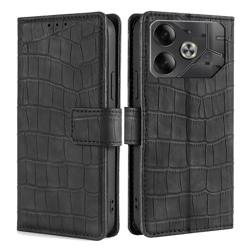 For Tecno Pova 6 5G Skin Feel Crocodile Magnetic Clasp Leather Phone Case(Black)