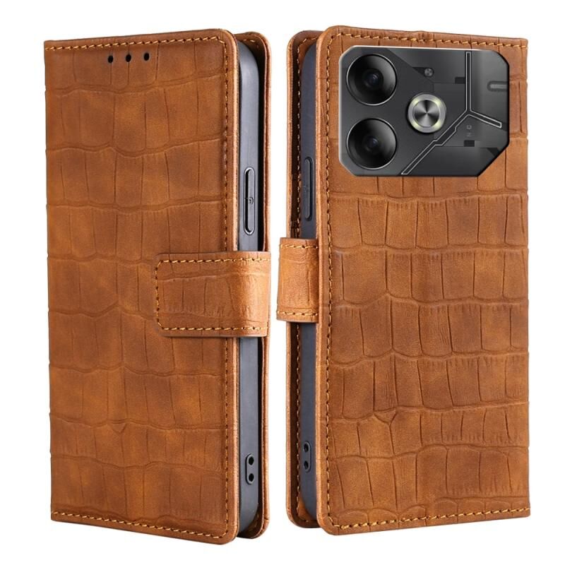 For Tecno Pova 6 5G Skin Feel Crocodile Magnetic Clasp Leather Phone Case(Brown)