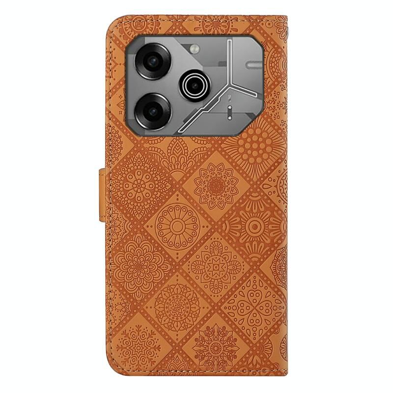 Θήκη τηλεφώνου από δέρμα με ανάγλυφο σχέδιο εθνοτικού στυλ για Tecno Pova 6 / 6 Pro (Καφέ)
