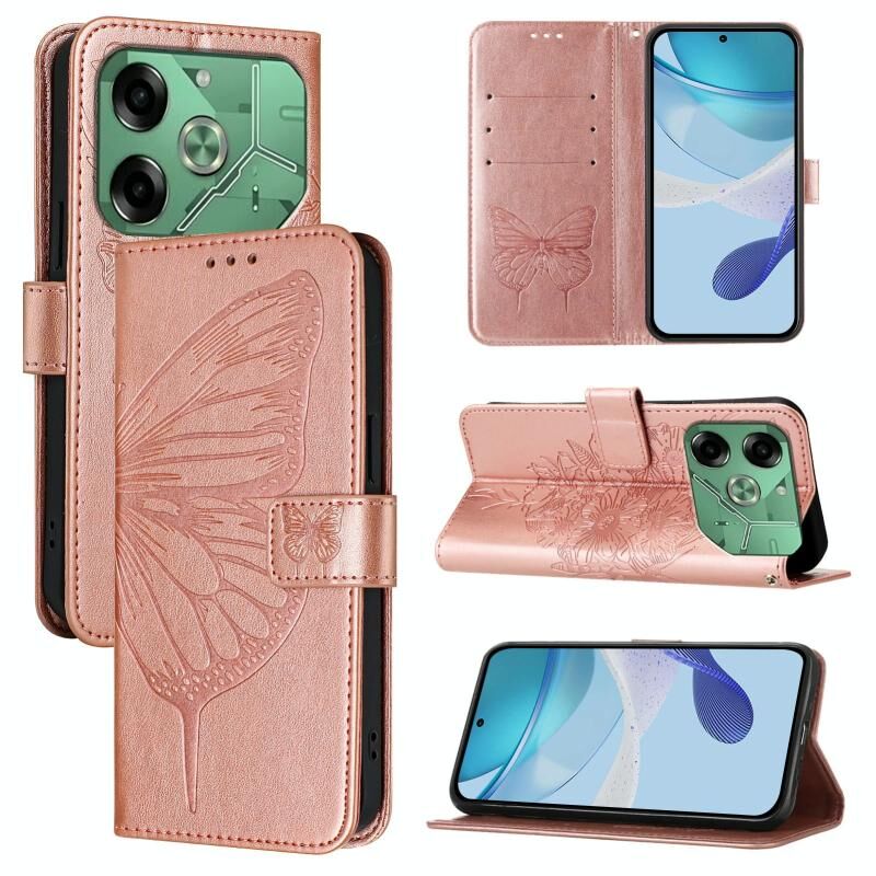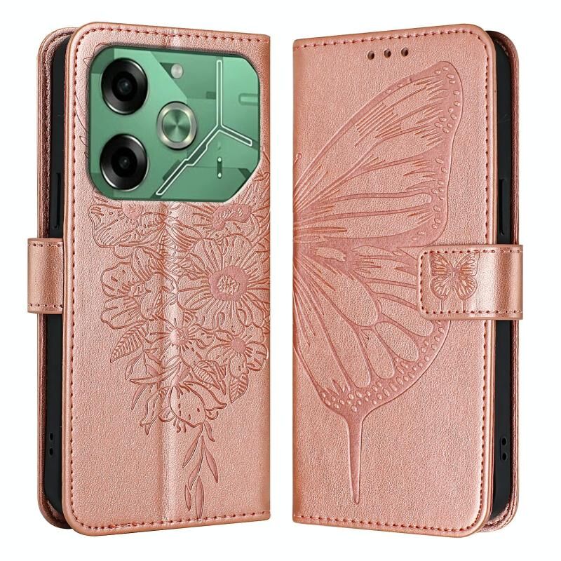 Θήκη τηλεφώνου Tecno Pova 6 με ανάγλυφο σχέδιο πεταλούδας από δέρμα (Μαύρο)