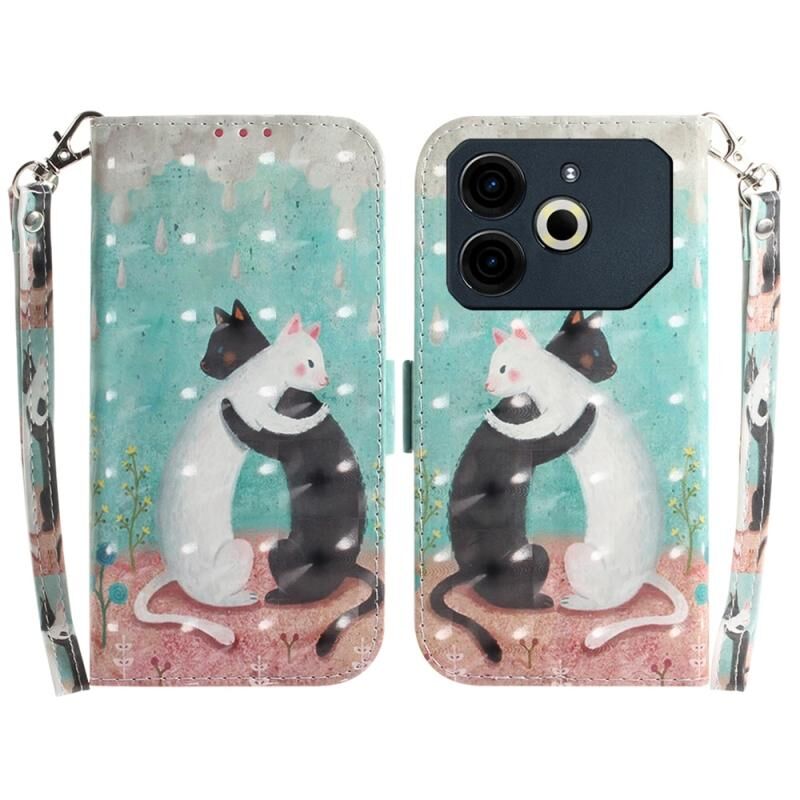 Θήκη τηλεφώνου δερμάτινη, οριζόντια, αναδιπλούμενη, 3D με χρώματα για Tecno Pova 6 Neo (Μαύρη Λευκή Γάτα)