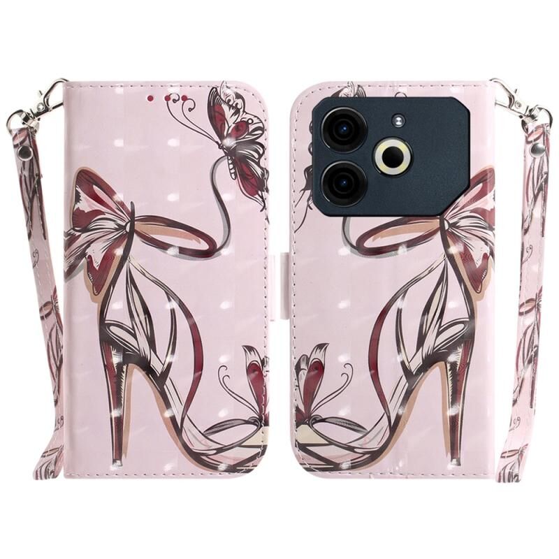 Θήκη τηλεφώνου δερμάτινη, οριζόντια, αναδιπλούμενη 3D με χρώματα για Tecno Pova 6 Neo (πεταλούδα με ψηλοτάκουνα)