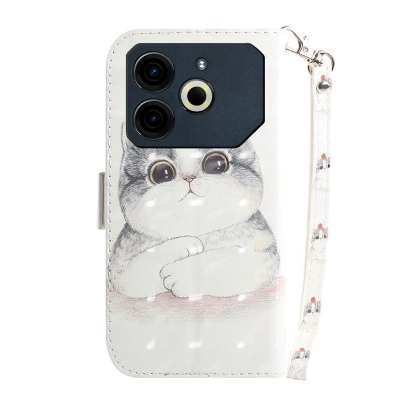 Θήκη τηλεφώνου δερμάτινη, οριζόντια, αναδιπλούμενη, 3D με χρώματα για Tecno Pova 6 Neo (Χαριτωμένη Γάτα)
