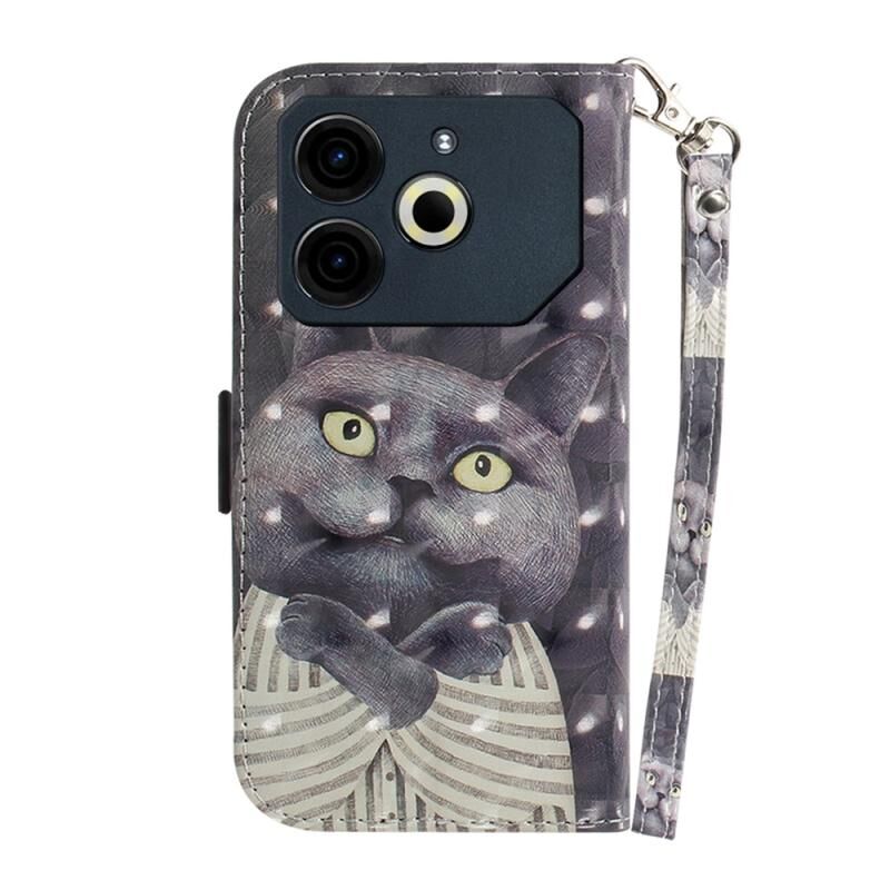 Θήκη τηλεφώνου δερμάτινη, οριζόντια, αναδιπλούμενη, 3D με χρώματα για Tecno Pova 6 Neo (Αγκαλιά Γάτας)